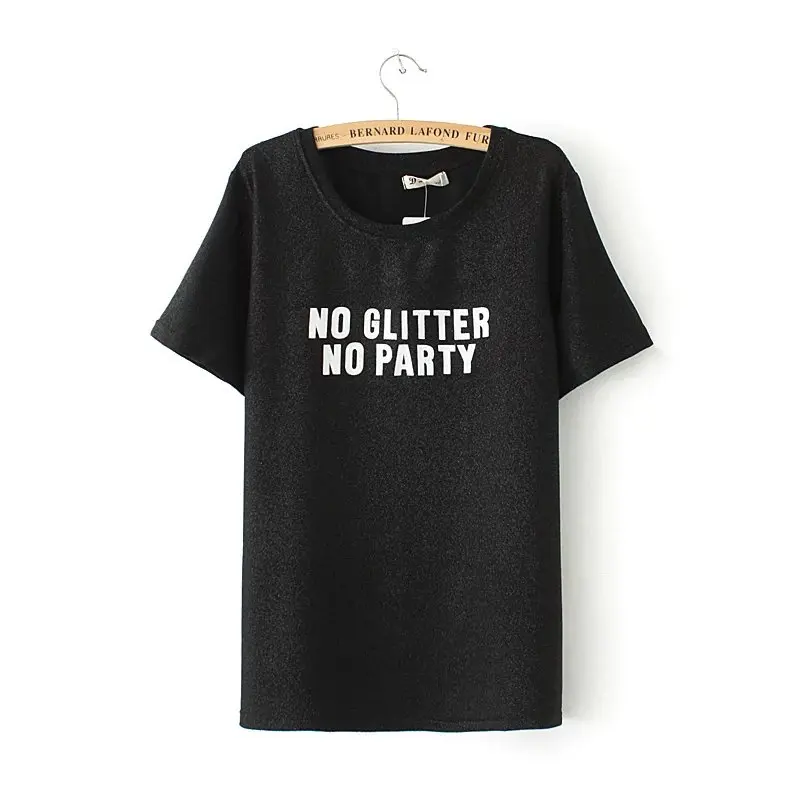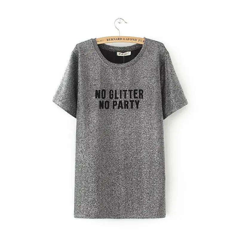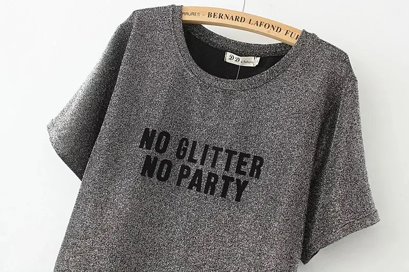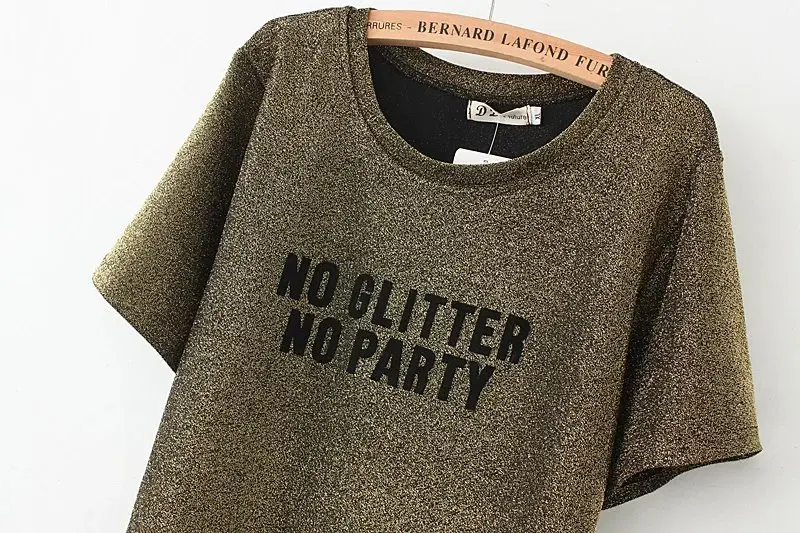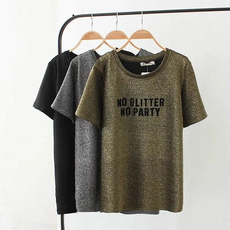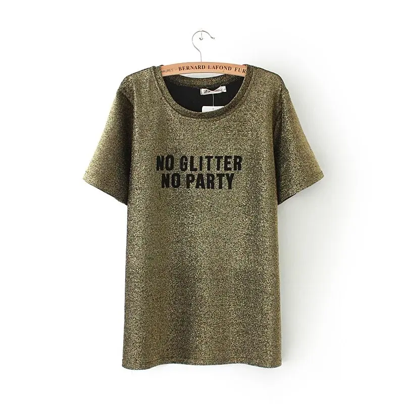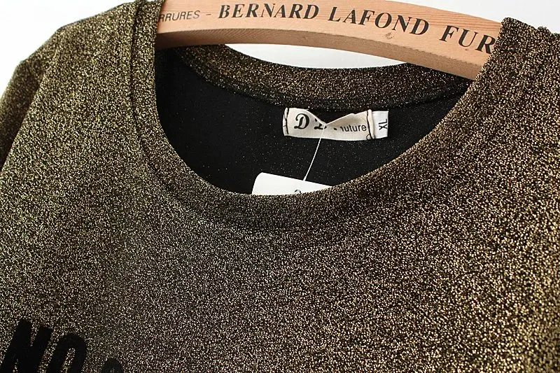 Model Number: 2017 gold & black & Silver Lurex Letter printing t-shirt