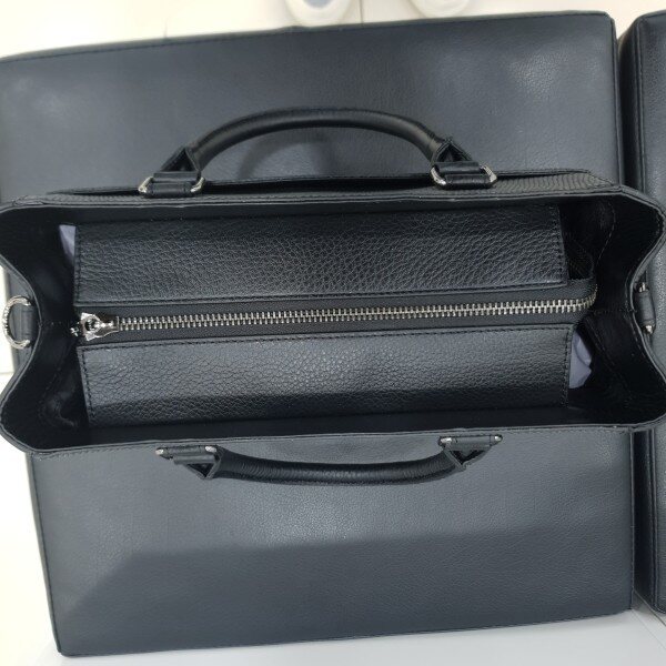 깔끔한 디자인의 세련미가 돋보이는 소가죽 토트백입니다~♥가벼운 무게감과 일정하게 유지되는 폭으로 내부크기가 넉넉합니다.분리된 수납으로 실용적인 사용이 가능하며,크로스끈이 있어 숄더와 크로스로 코디 할 수 있어요 :)※ 색상은 블랙, 그레이 두 가지 컬러입니다. ※가로(밑바닥기준) 30cm, 세로 23m, 폭 12cm(사이즈는 재는 위치에 따라 다를 수 있습니다.)