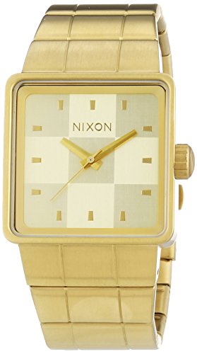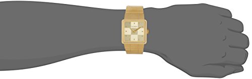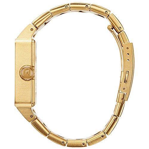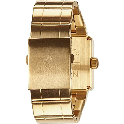 Nixon A013502 The Quatro men's watch features a 36mm wide and 11mm thick yellow gold plated solid stainless steel case with a fixed bezel and a textured push-pull crown. Nixon A013502 is powered by an accurate Japanese Miyota 13H quartz movement. This stylish watch also features a textured gold tone dial with gold tone luminous hands and index hour markers, scratch resistant hardened mineral crystal and water resistant to 100 meters. Nixon A013502 is equipped with a 26mm wide yellow gold plated solid stainless steel bracelet with a fold over push button clasp. Nixon A013502 men's The Quatro gold dial yellow gold plated steel bracelet watch is brand new and comes in an original Nixon gift box and is backed by a 2 years store warranty.Feature