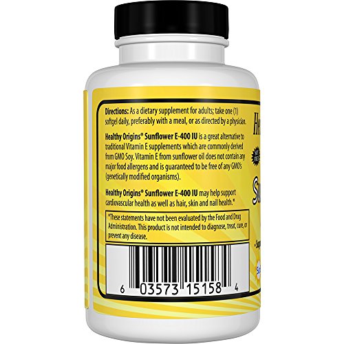 VITAMIN E FROM SUNFLOWER: Healthy Origins Sunflower E-400 IU is a great alternative to traditional Vitamin E supplements which are commonly derived from GMO soy. Sunflowers have shown to be an excellent, hypo-allergenic source for many different antioxidants.