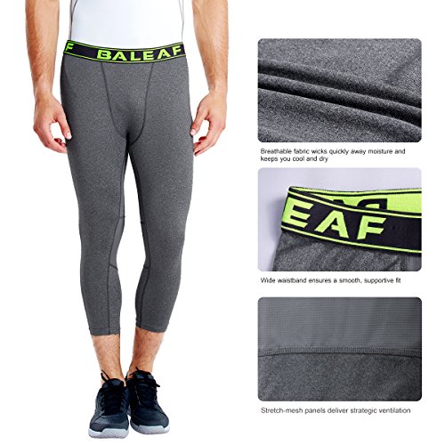 Title : Baleaf Men's Running Training Fitness 3/4 Compression Tights Leggings Charcoal Size M