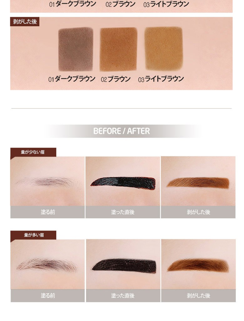 | 号数/カラー | #01ダークブラウン、#02ブラウン、#03ライトブラウン |
