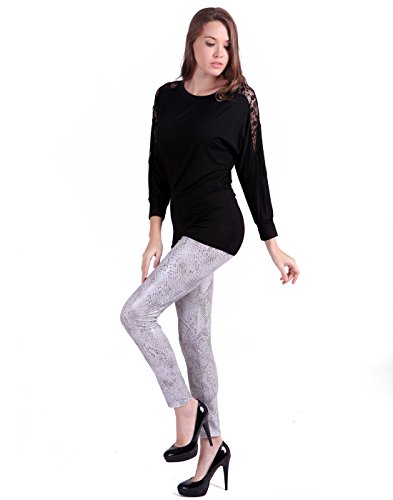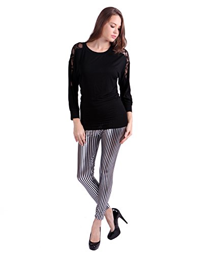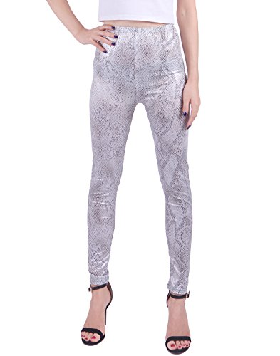 -. Binding : Apparel -. Brand : HDE -. Department : womens -. Feature : Falls at natural waist | Stretch-fit for added comfort / Figure-hing design gives you a slimmer silhouette / Dress them up or go casual perfect for layering under dresses, skirts, tunics and sweaters / Waist Sizing: Small 27" | Medium 29" | Large 31" | X-Large 34" | 2XL 36" / Length Sizing: Small 36" | Medium 36.5" | Large 39" | X-Large 41" | 2XL 42" -. ProductGroup : Apparel -. ProductTypeName : PANTS -. Title : HDE Women Digital Silver P.R.Int Shiny Leggings Metallic Pants