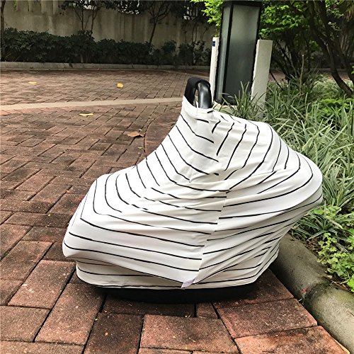 -. Title : Baby Car Seat Covers Neutral Super Soft Stretchy and Breathable Nursing Covers for Newborns with Storage Bag Cute White with Black Hand Drawing Stripes by Arnzion