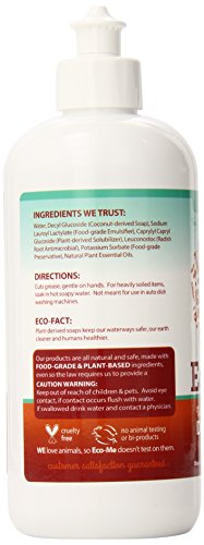 Tough on Grease, Gentle on Hands Eco Me naturally sudsing Dish Soap is a customer favorite. It provides safe and effective cleaning power without harmful toxins, chemicals or greasy residue. It's the perfect worry free gentle cleaner for glasses, silverware, baby bottles, countertops or to remove caked on food from dishes or greasy pots and pans. What Makes it Work? - Natural Plant Based Cleaning System