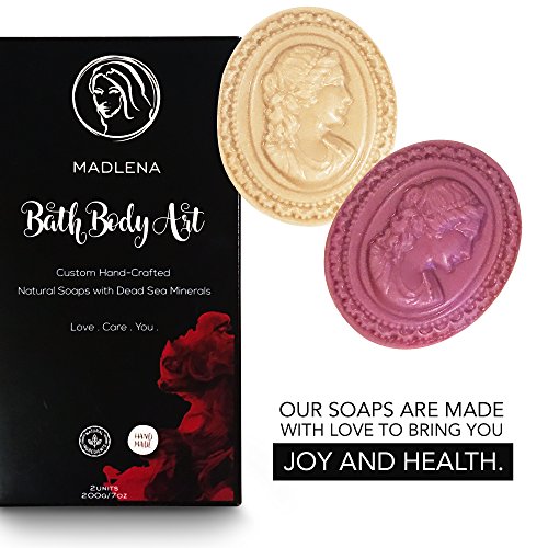 Luxury Soap Gift Set of 2 Sculpted Madonna Bars 7oz Size Lavender and Ocean Scent - 100% Natural Dead Sea Bath Soap Custom Hand Crafted with...