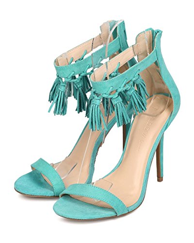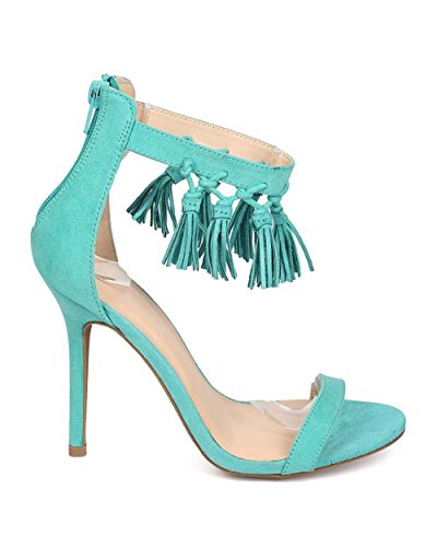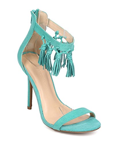 Wild Diva EG74 Women Suede Open Toe Tassel Single Band Stiletto Sandal - Jade