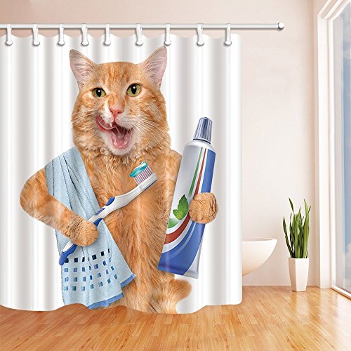 SZDR Waterproof and Mouldproof Bath Curtain+12 Hooks,69X70 Inch,Shower Curtain of The Cat is Brushing Teeth,Most Perfect Bathroom Decoration (Color1)