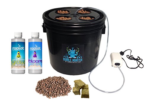 -. Feature : Grow Tent with DWC Hydroponic System / LED Grow Light / 1 Reservoir tank with 4 net pots, air pump and air stones / Starter Nutrients (grow and bloom) / Clay pebbles and rockwool