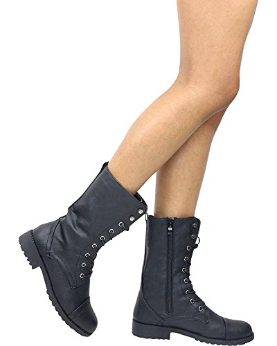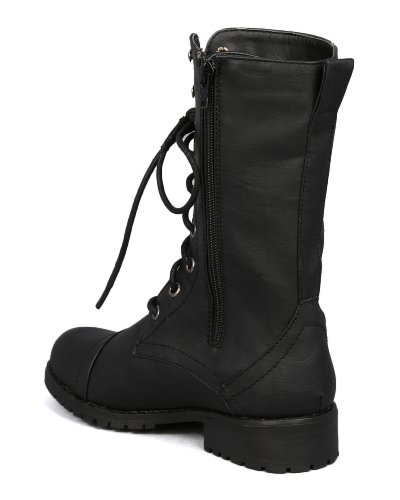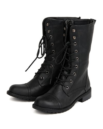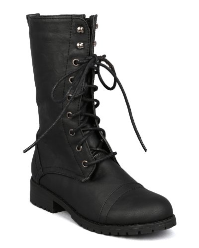 Studio : Nature Breeze Publisher : Nature Breeze Binding : Apparel Product Description Look chic yet ready for any rugged combat with these military inspired boots! Goes great with shorts or add a rugged look to a cute dress! Lace up boots features round toe, low stacked heel and stitching detail. Smooth interior lining and soft padded insole. Side zipper closure for easy pull on. 0