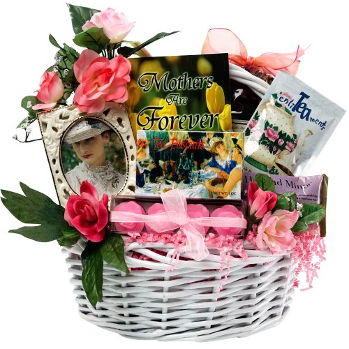 Each size features the inspirational keepsake book Mothers Are Forever, a keepsake Picture Frame, Tea, Gourmet Cookies and more.