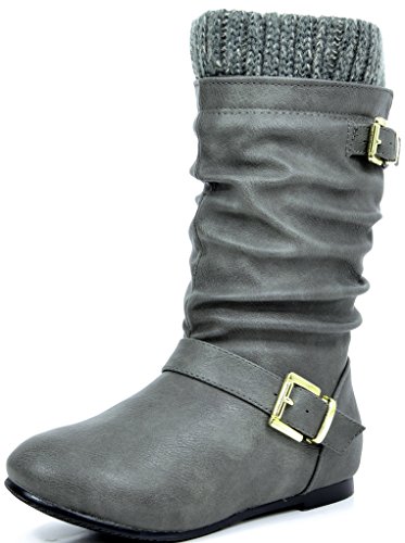 Your little angel will look very cute with a pair of this Dream Pairs girl's double buckles swearter boots. Pick from one of the assorted colors and mix and match with her favorite legging and sweaters for an adorable style. Full size only, please order half size up for loose fit.Feature