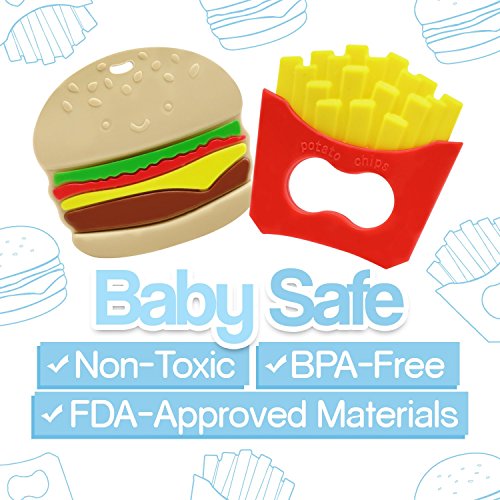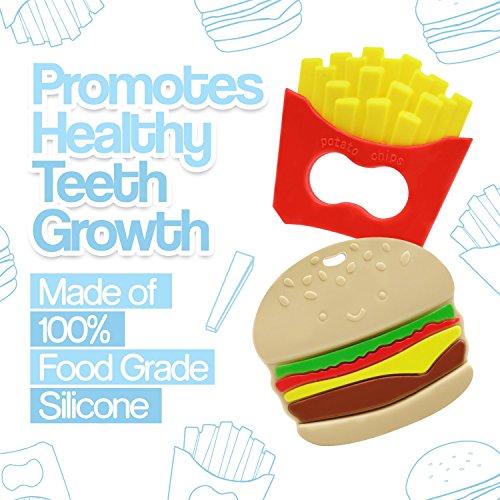 Baby Teething Toys Burger and Fries Baby Teether Toy Set - Say Bye Bye to Baby Teething Pains