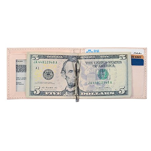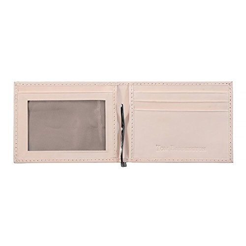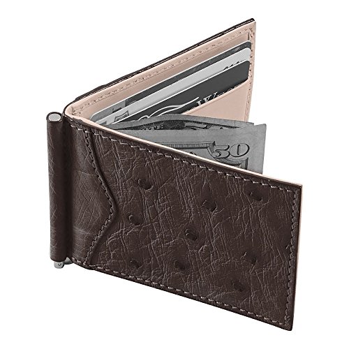 -. Title : Money Clip Wallet, Ostrich Leather, ID Holder, 3 CC Slots, Brown/Creme