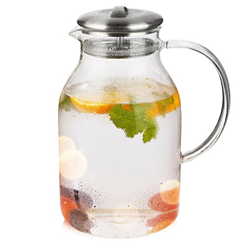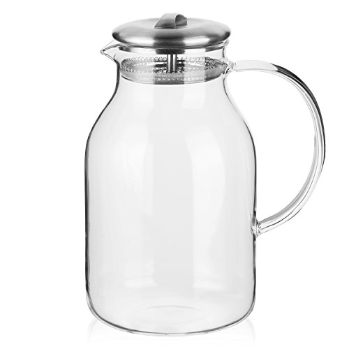 Studio : Hiware Publisher : Hiware Product Description Hiware Glass Pitcher is made from borosilicate glass which is lighter and stronger than regular glass, hand blown, heat-resistant and 100% lead-free. You can make tea, milk, juice, ice water, or white sangria, or anything you can think, with this pitcher. Our glass is slightly heavier than others on the market ensuring both the feeling of quality and the longest possible durability. Please rest assured that use.