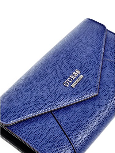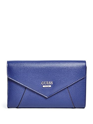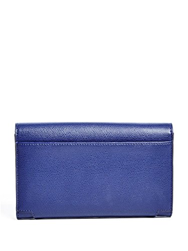 Feature : Saffiano-textured faux-leather exterior. Pale gold-tone hardware. / Front logo plaque. Fold-over flap with snap closure. / 12 card slots / 1 bill pocket / Divided interior with zipper center compartment