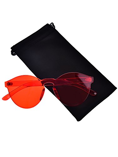 Hestya Women Men Oversized Sunglasses Transparent Lens Red Rimless Sunglasses Eyeglasses, 2.3 Inches in Width