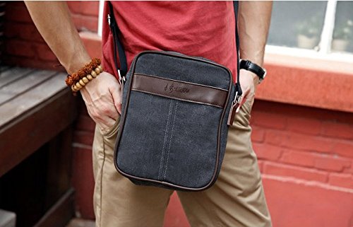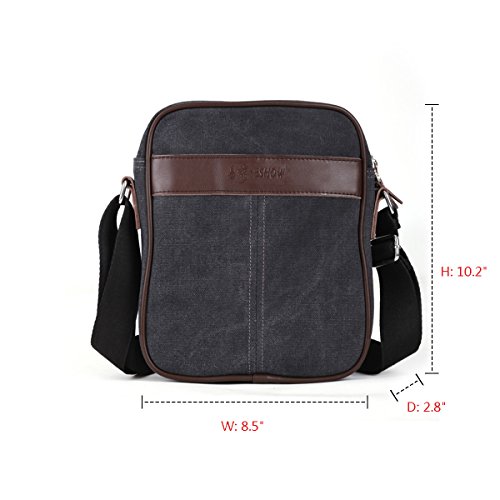 -. Brand : Eshow -. Department : mens -. Feature : Material: Premium cotton canvas / Front open pocket, back pocket with snap buckle / Adjustable shoulder strap / Dimensions: 8.5" W x 10.2" H x 2.8" D / Decorated by PU leather -. ProductGroup : Shoes -. ProductTypeName : HANDBAG -. Title : Eshow Men's Small Canvas Crossbody Shoulder Bag Messenger Bag Fanny Bag
