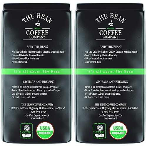 The Bean Coffee Company Organic El Grano Ricco (Costa Rican Classic), Medium Roast, Whole Bean, 16-Ounce Bags (Pack of 2)