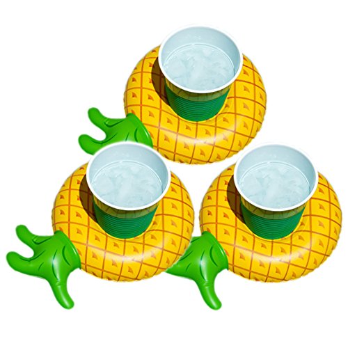 -. Feature : Great drink holder for Pool/ Beach Party, Hot tub, Lake, Children Bathing, Night market and as a gift / Perfect Size: Suitable for any sizes of beverage, such as Starbucks,Party cups, Whiskey glasses, beer cans, etc / Sold as a 3-Pack, including 3 identical Pineapple drink holders / This drink holder is made of high quality PVC, which gives excellent durability and can last for a long time / Easy and quick to inflate with improved valve