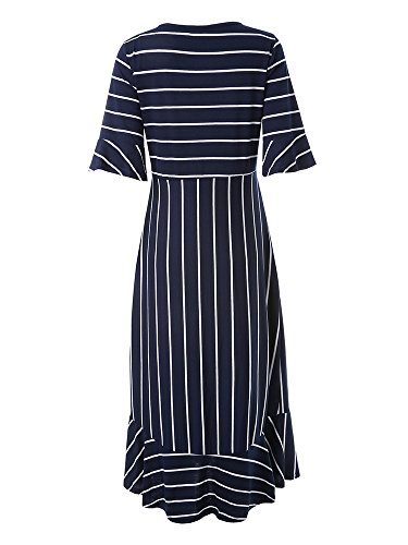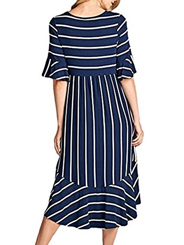 Feature: Round Neck, half Sleeve With Ruffle Details, High Low Irregular Hem,Elastic High Waist Knee Length Midi Dress