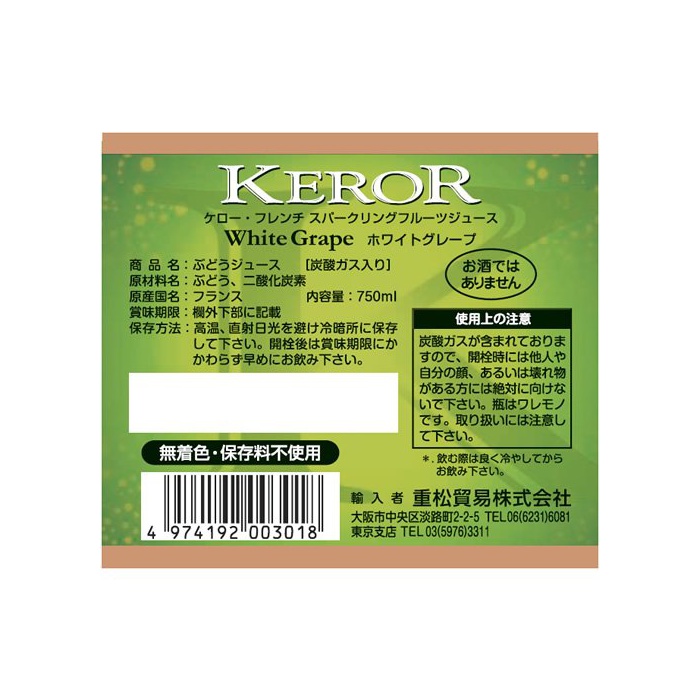 원본상품명: ケロ? スパ?クリングフル?ツジュ?ス ホワイトグレ?プ 750ml