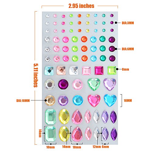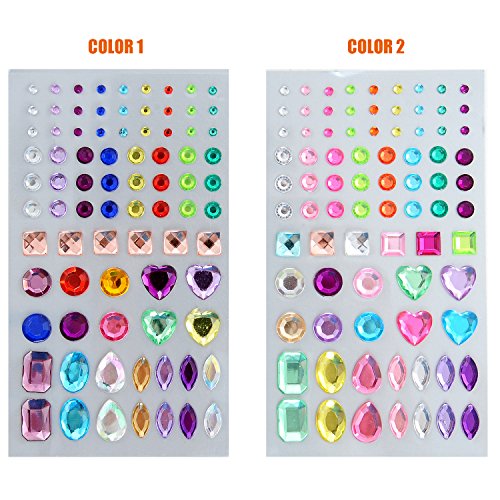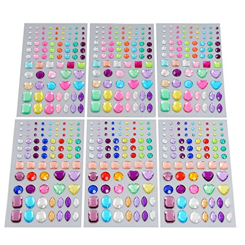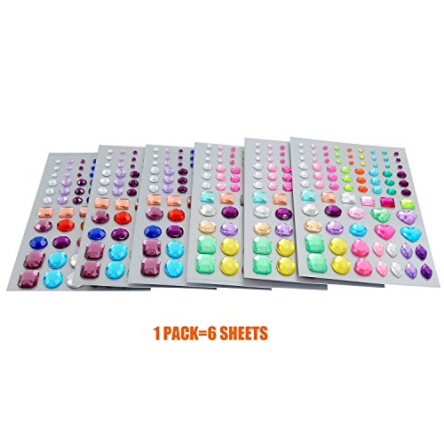 YUEAON 6 sheets jewel Stickers Self-adhesive crystal gem Rhinestone Sticker Bling Craft for diy nail face body scrapbooking shoes cars Multi-color Assorted Size