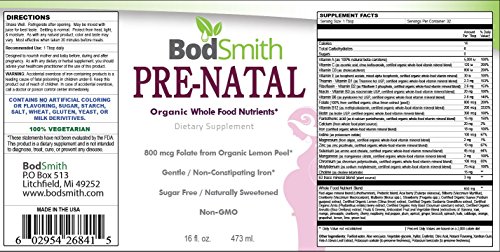 Studio : BodSmith Publisher : BodSmith Binding : Health and Beauty Product Description BodSmith Prenatal Multi Vitamin is a liquid supplement formulated with the help of doctors, midwives, and other medical professionals. Proper prenatal nutrition and care can help promote a healthy pregnancy and baby. Breastfeeding and pregnant women need to meet the demanding needs of a growing baby. Most health professionals agree, that when taken daily, a prenatal supplement, along with a balanced, healthy diet, can help to provide the levels of vitamins, minerals, and nutrients that your body needs when pregnant or nursing. Our Prenatal Multi Vitamin is formulated to deliver the vital nutrients that both the babies and the mothers need. We have included targeted levels of vitamins, minerals and nutrients to specifically nourish mother and baby. What makes this Prenatal Multi different from the other prenatal multivitamins on the market? Prenatal vitamins help expecting and breastfeeding mothers support healthy nervous and immune systems, maintain energy levels, and help enhance bone health. Fatigue and stress can be major issues for pregnant women. All of the nutrients that a baby receives comes from the mother. If the mother is deficient in a vitamin or mineral then their baby's health can be affected. This formula maximizes the nutrition of every woman, whether they are expecting or not. Unlike tablets or pills, Prenatal Multi Vitamin is fully absorbed by the body. This means more nutrients are delivered to the womb, where it is needed most. Also unlike pills and tablets, there is no room for fillers or binders. You are getting what is stated on the label and nothing else! Using wholefood folate combined with natural vitamins and minerals, Prenatal Multi Vitamin is a great choice for any woman who is concerned with their health, as well as the health of their unborn child. Wild Berry Flavor 100% Vegetarian 0