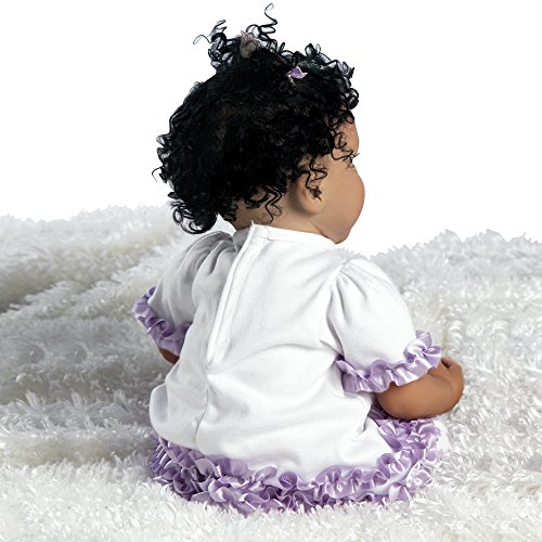 - Feature : Adorable 18 inch baby boy (11 inches seated) lovingly sculpted by Sherri Williams / Cupcake was artfully handcrafted from our exclusive NEW material Flex-Touch vinyl to look and feel just like a real baby! / Flex-Touch Vinyl is "soft as a baby's bottom" providing a delicate texture and realistic skin tone. The arms and legs are made from pure Flex-Touch Vinyl while the head is created in a remarkable 2 step process giving it the effect of a delicate skin on the facial features. / She comes with a weighted soft cloth body (with beads and pellets) for the most lifelike feel when you cuddle her close / She has beautiful handset brown eyes, hand painted details, hand applied eyelashes and gorgeous curly black hair