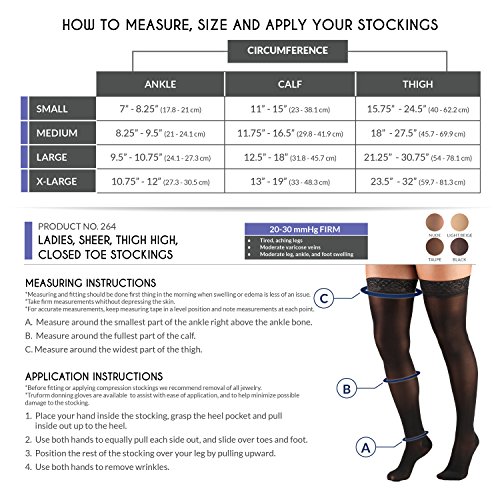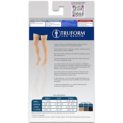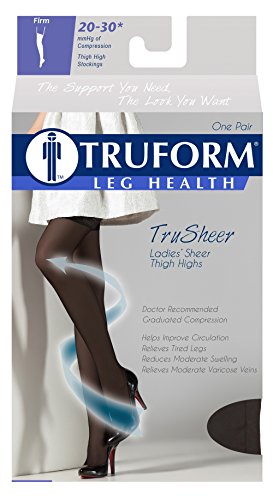 ReleaseDate : 2015-06-22 Studio : Truform Publisher : Truform Binding : Health and Beauty Product Description Truform 0264 The Truform 0264 compression stockings from the Trusheer series were created to help restore leg health and reduce discomfort. Graduated Compression Technology - Graduated Compression provides two primary benefits: it helps reduce and prevent swelling for the wearer, and the compression action help to prevent the slowing of blood flow so it can flow more quickly up the leg back toward the heart; helping to maintain positive circulation and leg health. Versatile Support - Truform therapeutic compression stockings feature classic styling and a smooth knit fabric that helps conceal unsightly conditions. They provide long-lasting support that appeals to today's active, fashion conscious woman and serve excellently as both business and casual wear. The 20-30 mmHg firm compression level is great for leg fatigue and slight ankle, leg and foot swelling. Features five intervals of therapeutic graduated compression, doctor-recommended to help relieve tired, heavy, and aching legs, aids in the treatment of spider veins, varicose veins, and swelling of the leg and feet, ideal when sitting or standing for long periods of time Quality Guaranteed - We take the extra time and effort necessary to insure a therapeutically effective, comfortable fit. The combination of state-of-the-art materials and equipment, plus knitting "know-how" sets Truform apart from the crowd to make your legs look and feel great! 0