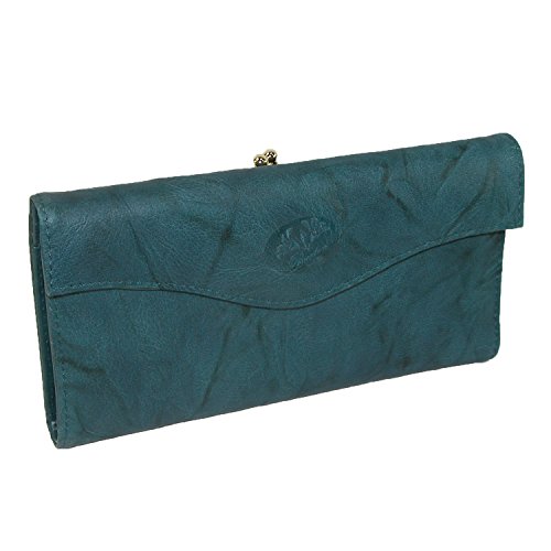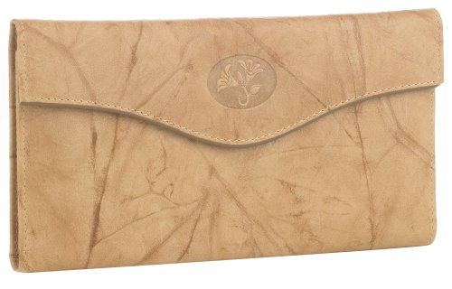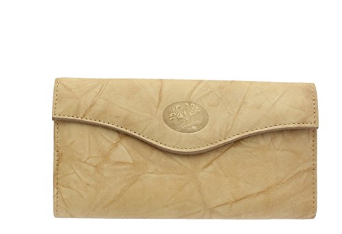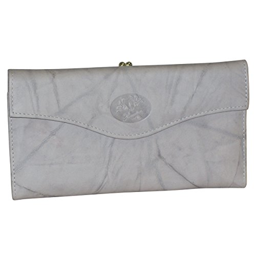 This is a unique small leather wallet with a rich floral embossing accented in Italian inked edge.