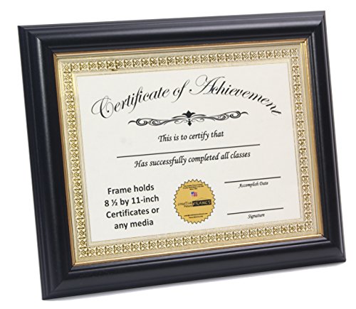 CreativePF [8S9R-8.5x11bk/gd] Black Certificate Frame Displays 8.5 by 11-inch Certificates, Graduation, University, Diploma Frames with Stand & Wall Hanger