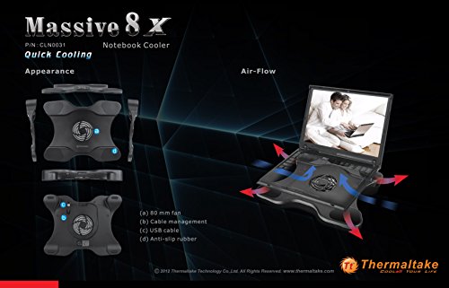 -. Title : Massive 8 X Laptop Cooling pad with Powerful 80mm fan for 15” to 17” inch Notebook