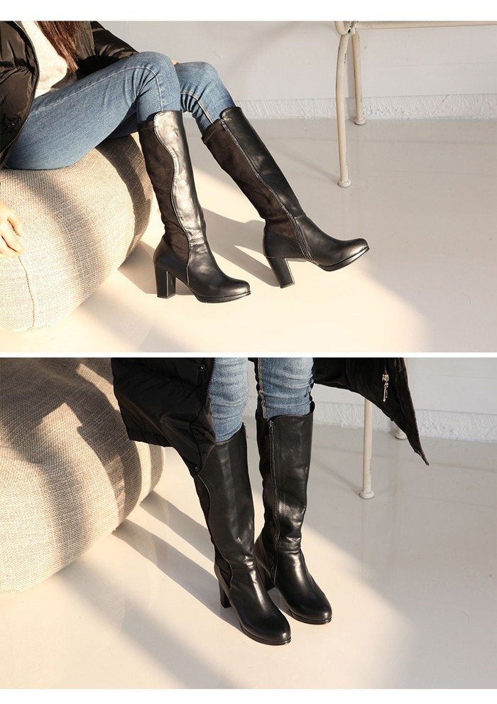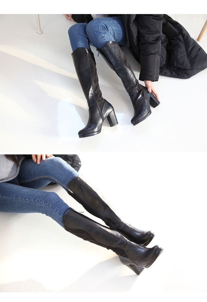 商品名:ロングブーツ レディース チャンキーヒール 太ヒール スエード調 2017 秋 冬 ファッション 靴 婦人靴