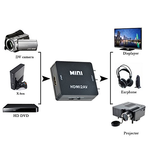 The Mini HDMI to AV signal converter which will convert HDMI video signal or audio signal to AV(CVBS)composite video signal and the FL/FR stereo audio signals, while support DVI system sideline signals.