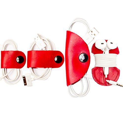 Cord Keeper (Cord Clam) & Headphone Wrap 4-Pack Handmade by Hide & Drink :: Scarlet Red
