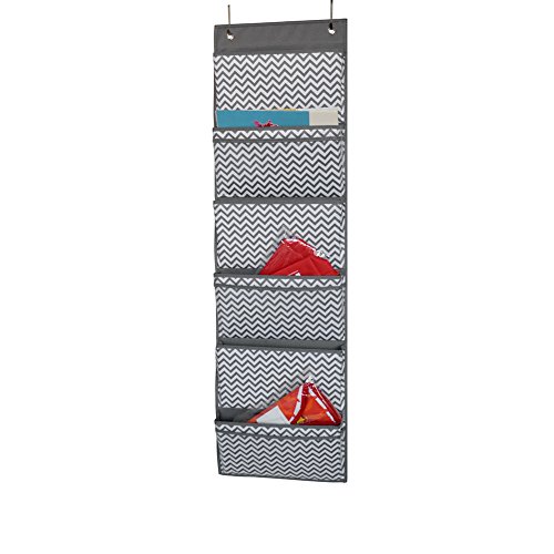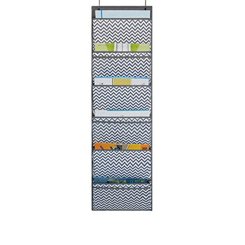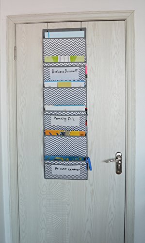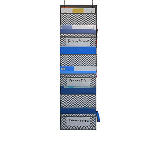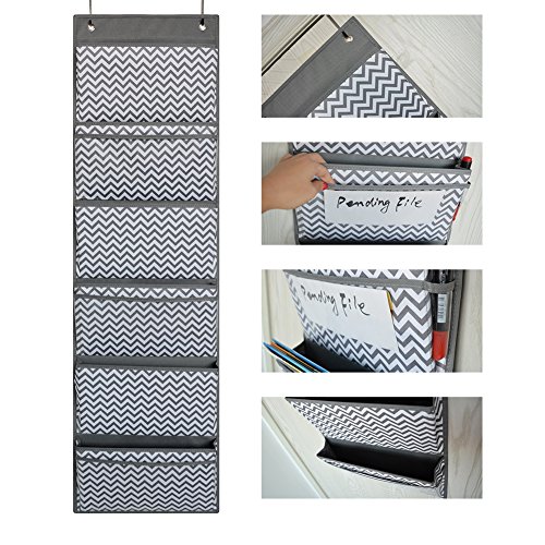 Godery Over the Door hanging File Folders Organizer, Fabric Office Supplies Storage Organizer, Wall Mount Pocket Chart Storage for School ,Classroom, Home, Closet , 6 Pockets (grey)