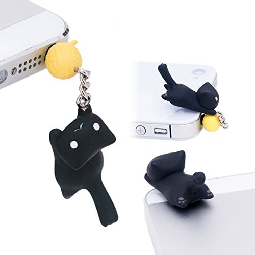 Slash Cute Kawaii Adorable Cat Universal 3.5mm Anti Dust Earphone Jack Plug Cap for Iphone4/4s/5/6/6 Plus/6s/6s Plus/SE, ipod,ipad,htc,samsung S3 S4 S5 (Black Cat) S10024
