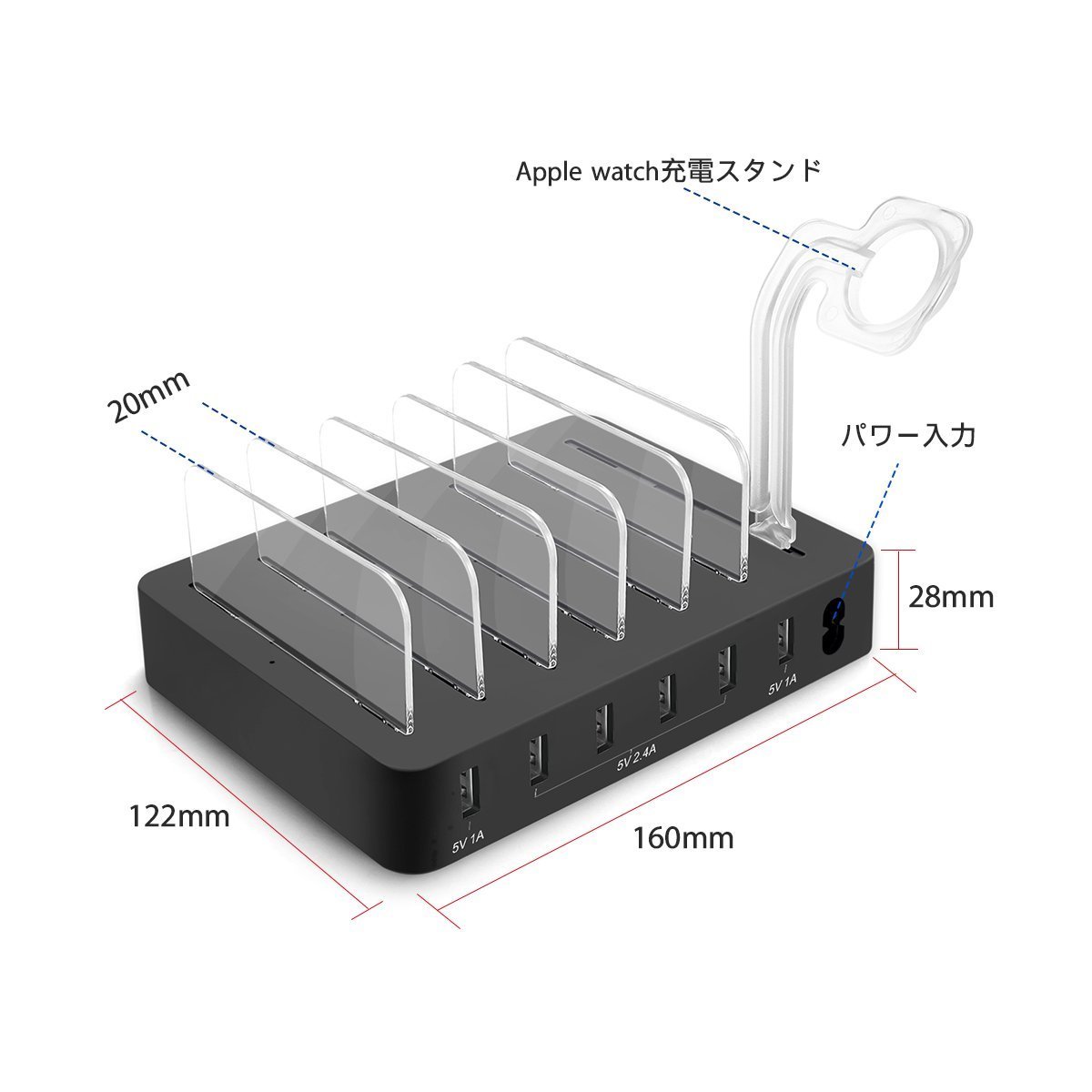 When charging multiple terminals, wiring can be kept beautifully, and there is no trouble with the cable that is being messed up.