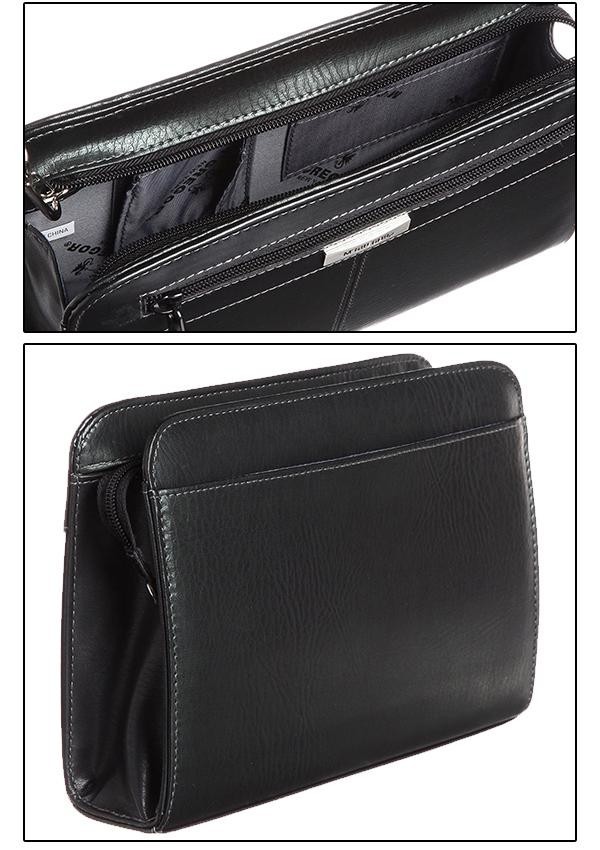 | コンパクトなサイズで三角ポーチタイプのセカンドバッグは、日常使いにピッタリです。前面にファスナーポケットを配置しています。 |