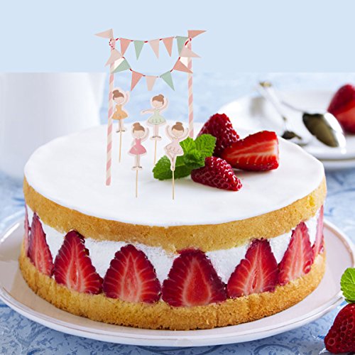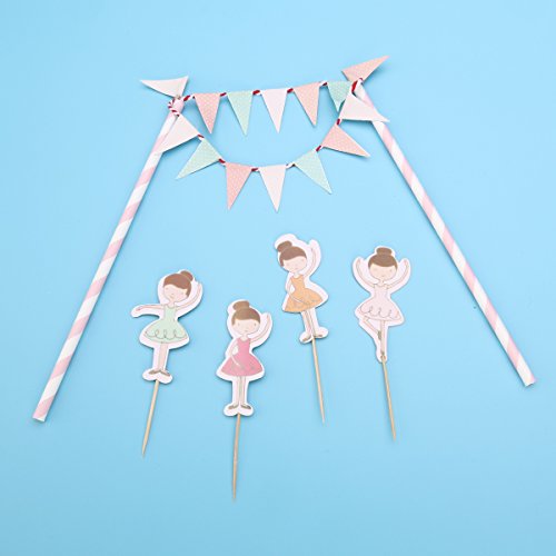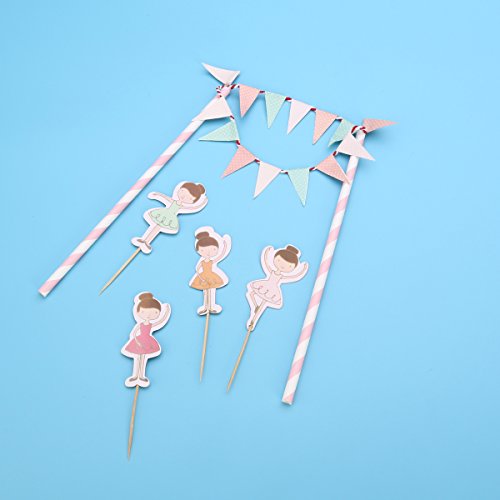 BESTOYARD Birthday Cake Bunting Flag Topper Ballerina Toothpicks Wrap Decorations Kits Ballet Dancer Party Supplies Baby Girl Shower Favors (Random Color)