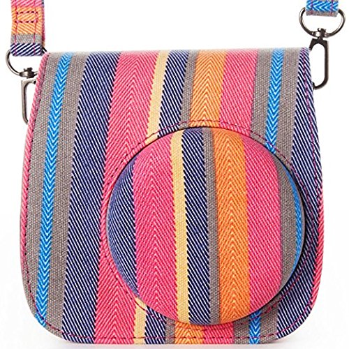 WOODMIN [Fujifilm Instax Mini 8Kamera Fall] -woodmin Groovy PU-Leder Fuji Instant Kamera Tasche mit Schultergurt