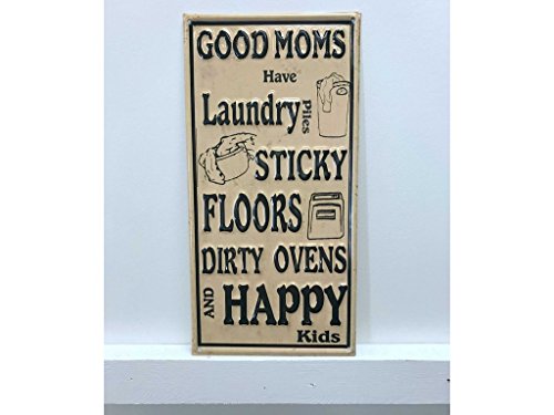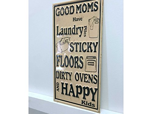 Sign-A-Tology 8"x16" Good Mom Vintage Metal Sign "Good moms have laundry piles sticky floors dirty ovens and happy kids" Yellow