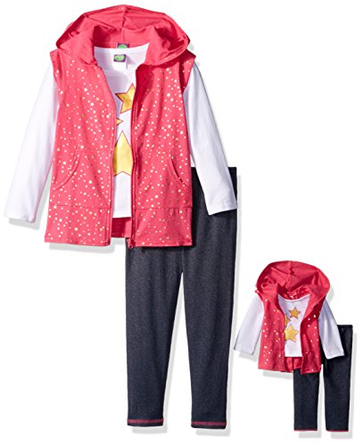 4 piece legging set, knit tank with knit cozy sweater and knit printed legging with necklace and matching doll outfit