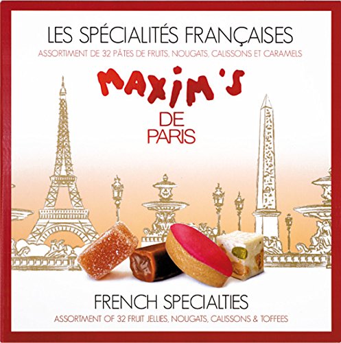 -. Feature : Imported straight from France / Maxim's de Paris is the same brand as the famous restaurant in Paris owned by Mr. Pierre Cardin / 32 delicious gourmet candies from France of 4 different kinds: Calissons, Nougats, Fruit Pastes & Caramels / Perfect as a gift or to treat yourself / Beautiful cardbox gift box