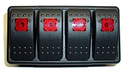 Fastronix Lighted (4) Weatherproof Rocker Switch Panel Auto/Marine (Red)