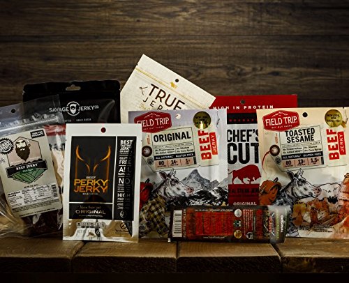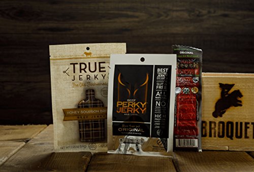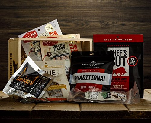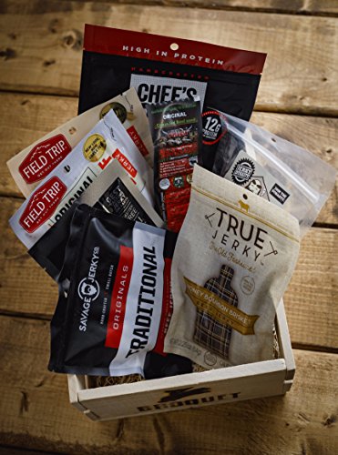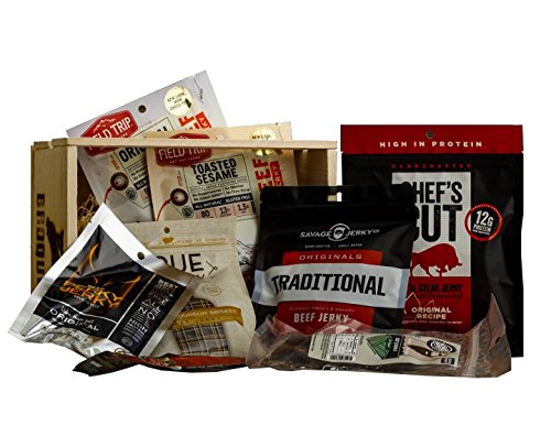 Ultimate Beef Jerky Sampler Gift Crate - 8 Packs (Various Flavors) - Gift Jerky Box – Comes In Wooden Gift Crate – Gift For Men – Jerky Collection
