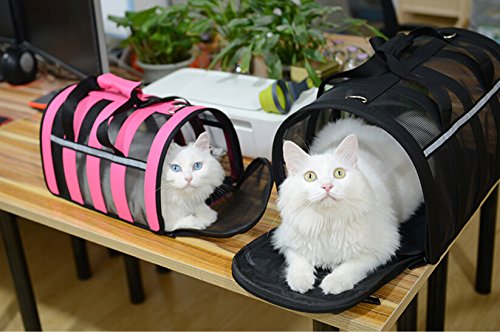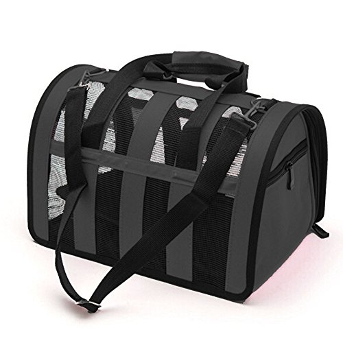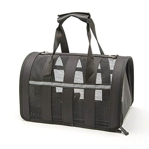 Description: Material:made of strong mesh cloth. breathable and durable. Dimension: S: 35*24*22 CM. /13.7*9.4*8.6 Inches.Product Weight: 550g. Suit pet weight below 4 kg/ 9 lb. M:40*26*26 CM./15.7*10.23*10.23 Inches.Product Weight:650g. Suit pet weight about 8kg/17.6 lb. L:48*28*28 CM. /18.9*11*11 Inches. Product Weight:930g. Suit pet weight about 12kg/25.6 lb Color: Blue/ Rose red/ Black/ Red. Package include: 1 X pet travel airline carrying bag. Feature: 1?Strong mesh cloth can keep the pet bag stay up .it doesn't collapse on the pet like a lot of other soft carriers 2. SEE THROUGH mesh cloth.The whole thing is mesh, you can look after your pet during the whole trip. 3. FOLDED DOWN designed. You can fold it and fit into a backpack. 4.STIFF BOTTOM.There is a hard insert in the bottom that is pretty stiff and durable. it doesn't bend when you carry your pet. 5.Ideal for your dog ,cat,rabbit ,guinea pig,hamster and any other pet weight below 25 lb. 6.EASY TO CLEAN. Clean it with a brush in the water. Air dry. Metal dual zippers.pet can stick its head out the front if zipped part of the way up. How to maintain: 1.fold it into flat. When you do not need it in a long time. 2.brush it inthe water and air dry. If you have any questions,please contact with us by email. 0