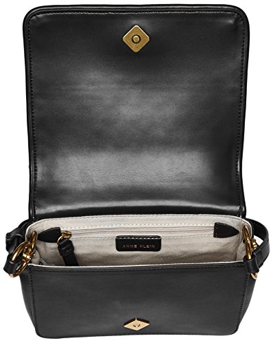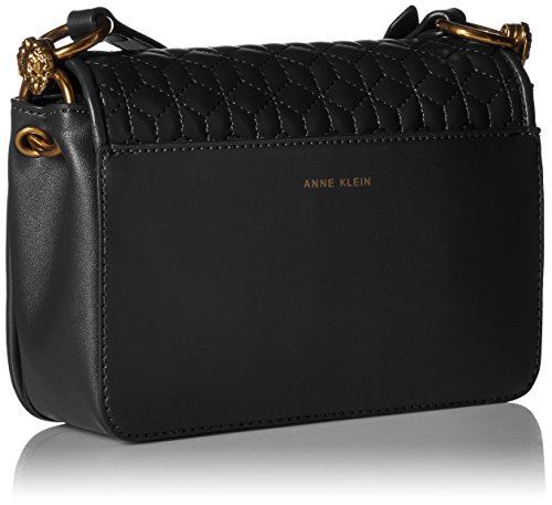 Anne Klein Lion Ring Small Quilted Flap Crossbody, Black/Black