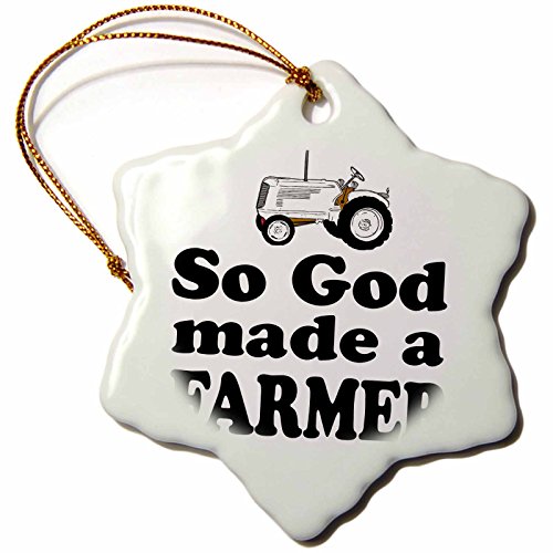 3dRose LLC orn_159584_1 Porcelain Snowflake Ornament, 3-Inch, "So God Made a Farmer Rancher Farmer Country"
